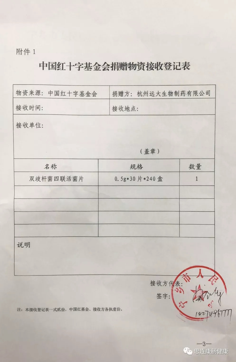 郴州市第二人民醫(yī)院發(fā)來中國(guó)紅十字基金會(huì)捐贈(zèng)物資接收登記表確認(rèn)已經(jīng)收到捐贈(zèng)藥品。